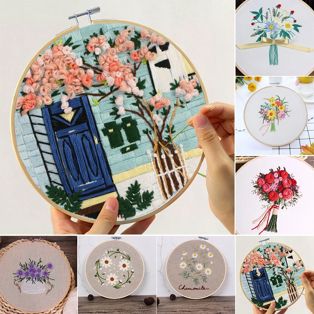 *Embroidery starter kits with pattern, DIY needlework kits.