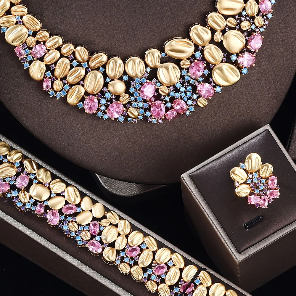 017354~ Trendy Women Necklaces Set Cubic Zirconia Bridal Jewelry Sets Dubai Wedding Party Accessories Best Selling Saudi Arabia