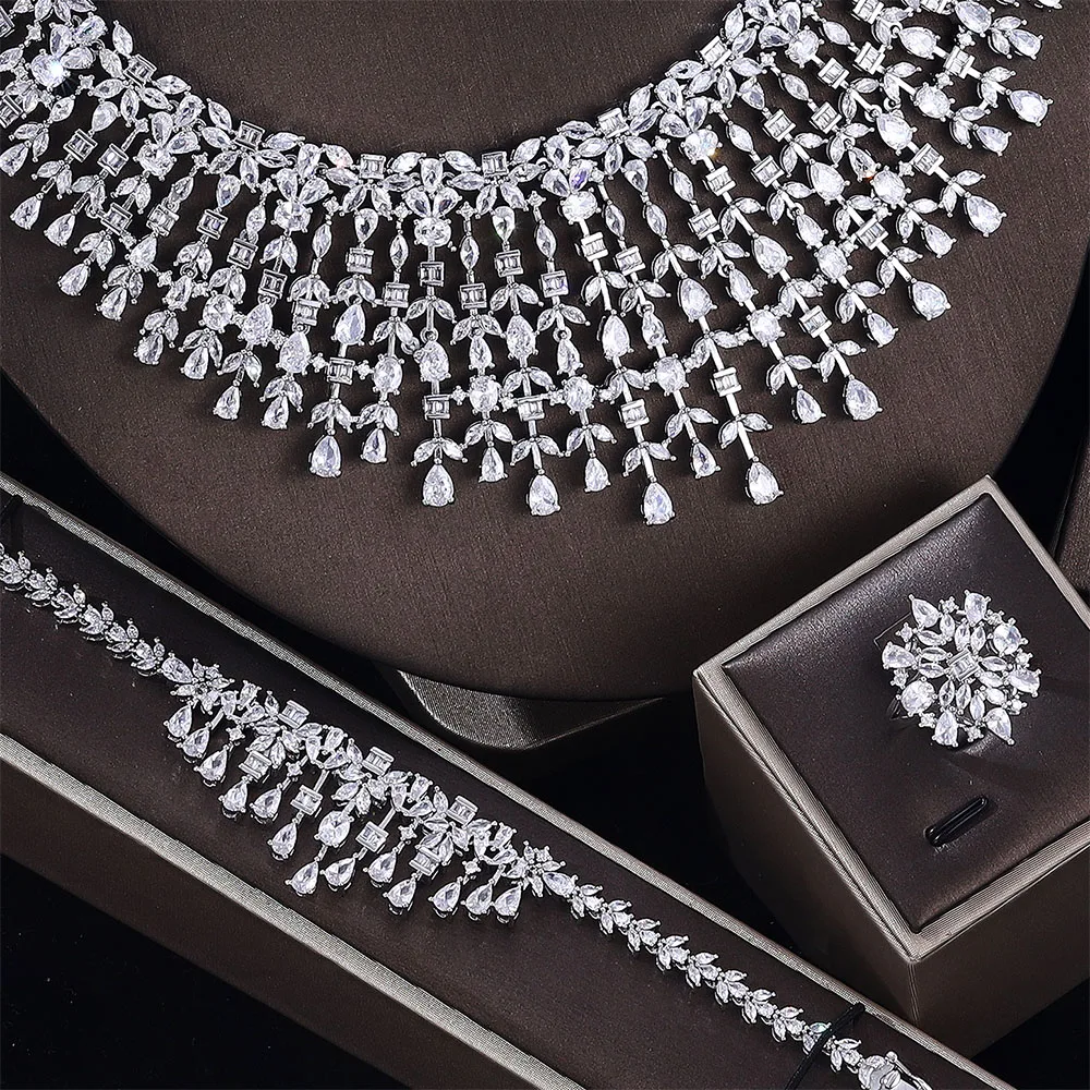 2023 New Cubic Zirconia Crystal 4-Piece Set Dubai Necklace Set Suitable for Bridal Wedding Jewelry Set