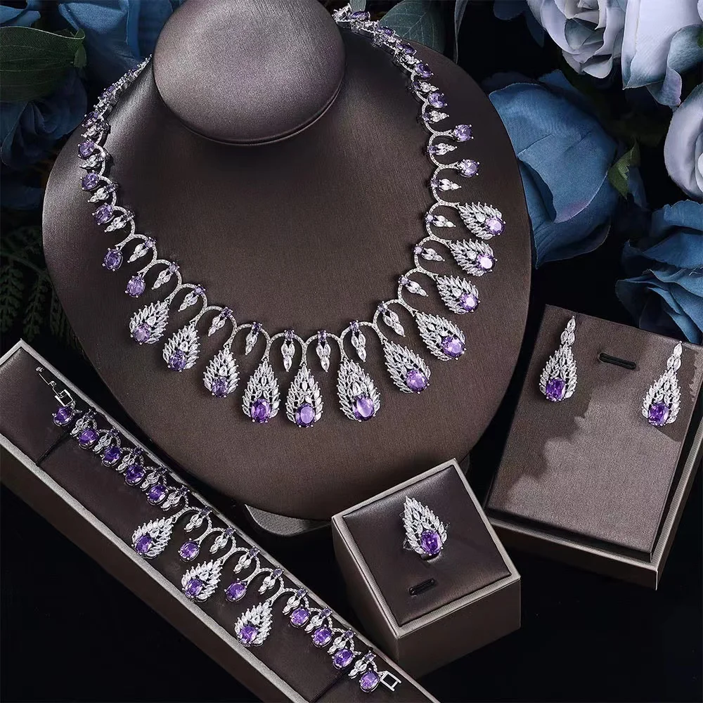 2024 Clever Dubai Water Drop 4-piece Necklace and Earring Set with Cubic Zirconia Jewelry for Women’s Wedding Party Gifts