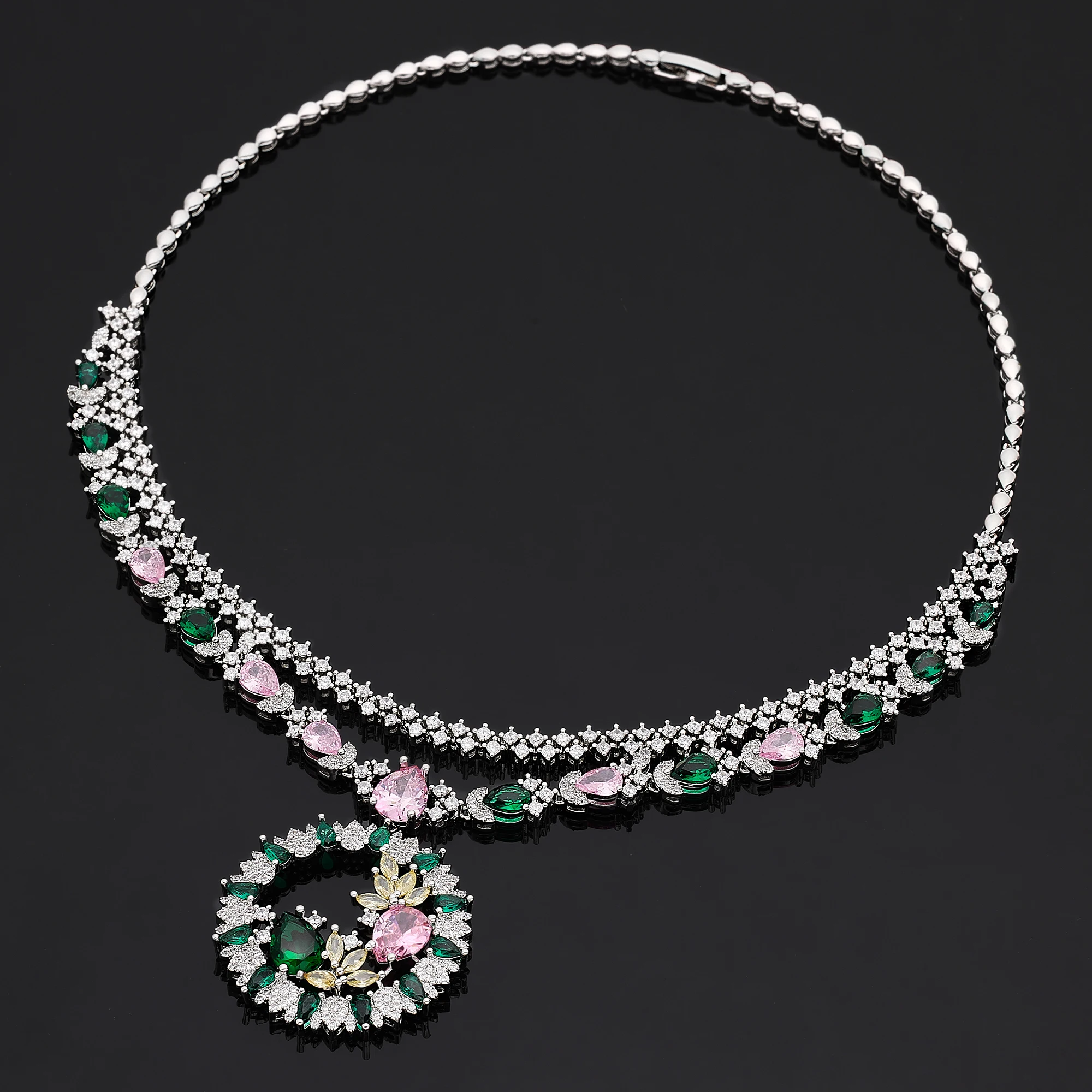 017354~ Trendy Women Necklaces Set Cubic Zirconia Bridal Jewelry Sets Dubai Wedding Party Accessories Best Selling Saudi Arabia