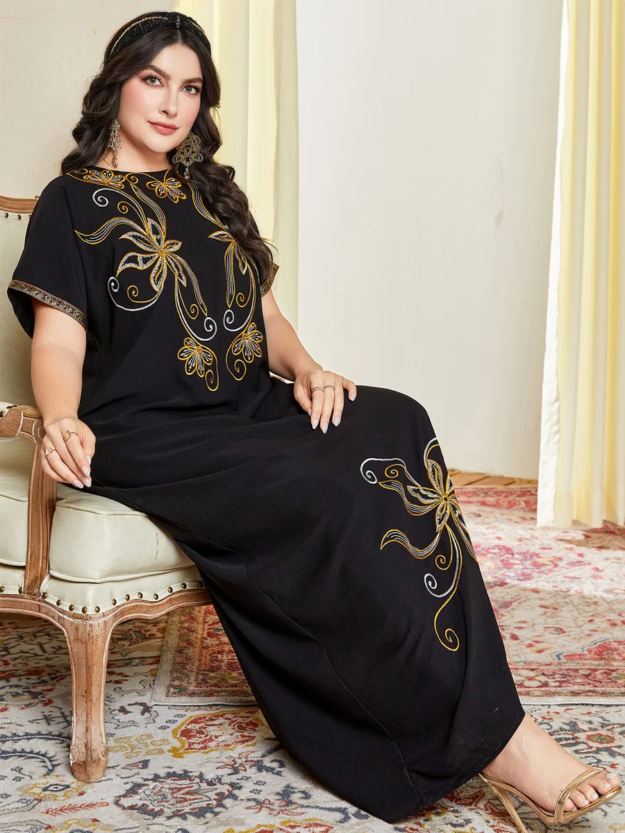 Eid Embroidery Muslim Abaya Dress Women Dubai Arab Caftan Short Sleeve Turkey Morocco Kaftan India Gown Robe Party Vestido 2025
