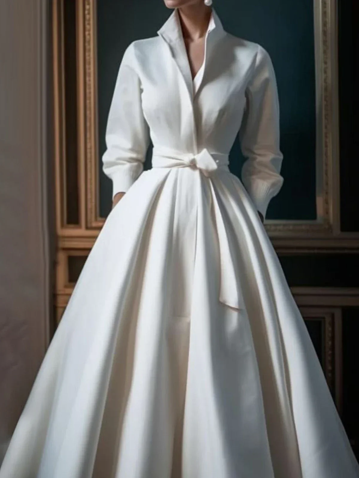 Be the first to review “Elegant Women Shirt Dress Long Sleeve Stand Collar Minimalist A-Line Pleated Wedding Guest Long Maxi Dresses with Blet” Cancel reply