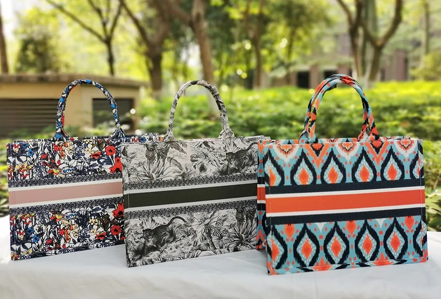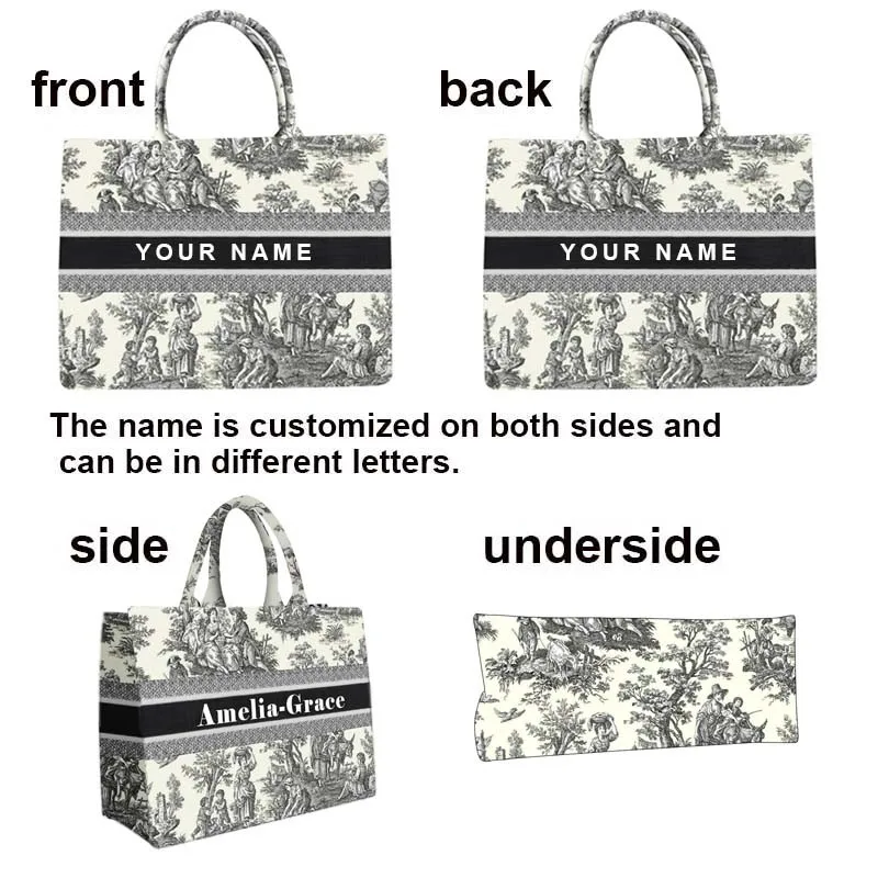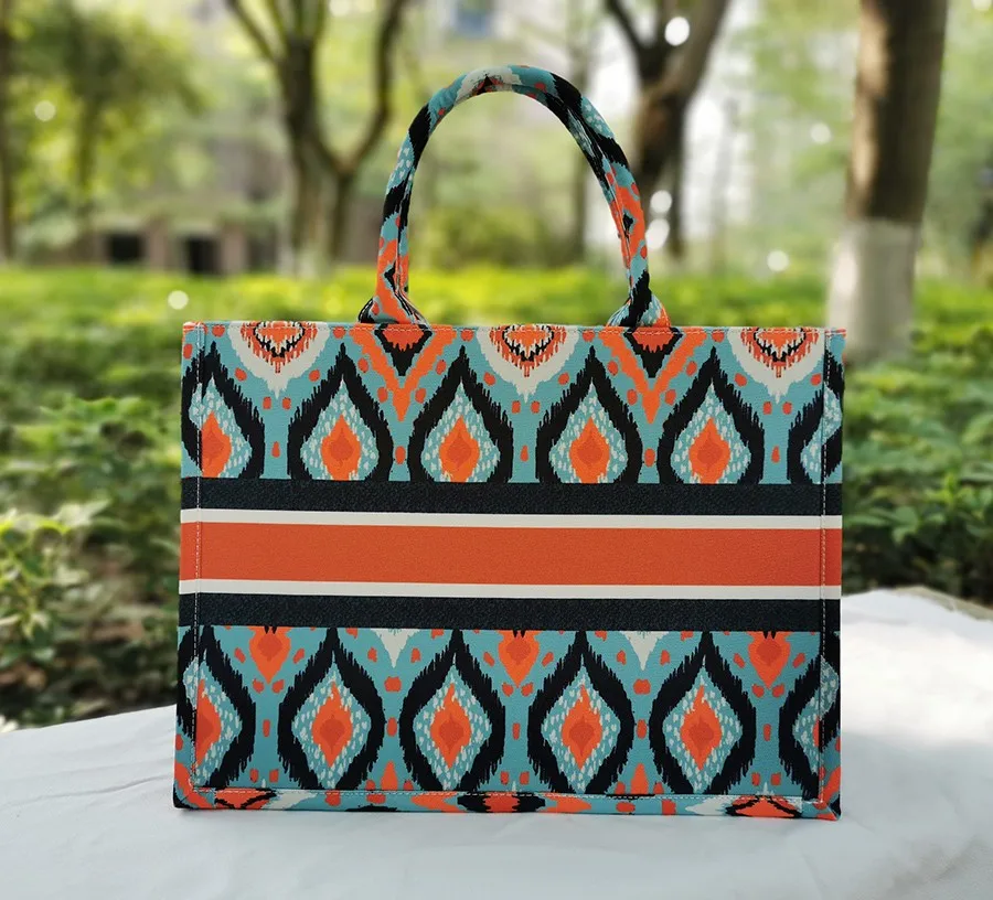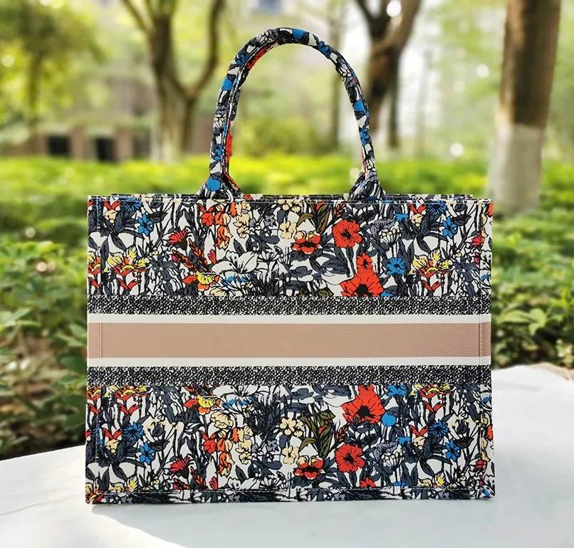 European And American Style Large Capacity Fashionable Printed Flower Handbag Customizable Letter Canvas Book Bag