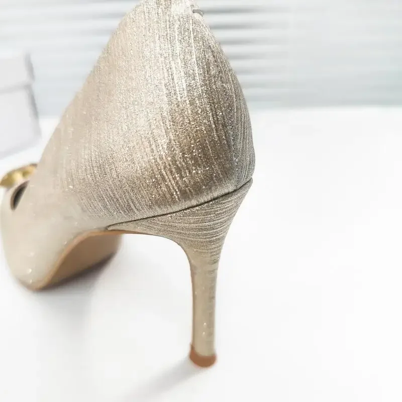 Fashion Women’s High Heels Light Luxury Brand Designer Career Office Female Fine Heel Shoes High Heels Metal Buckle Women’s Shoe