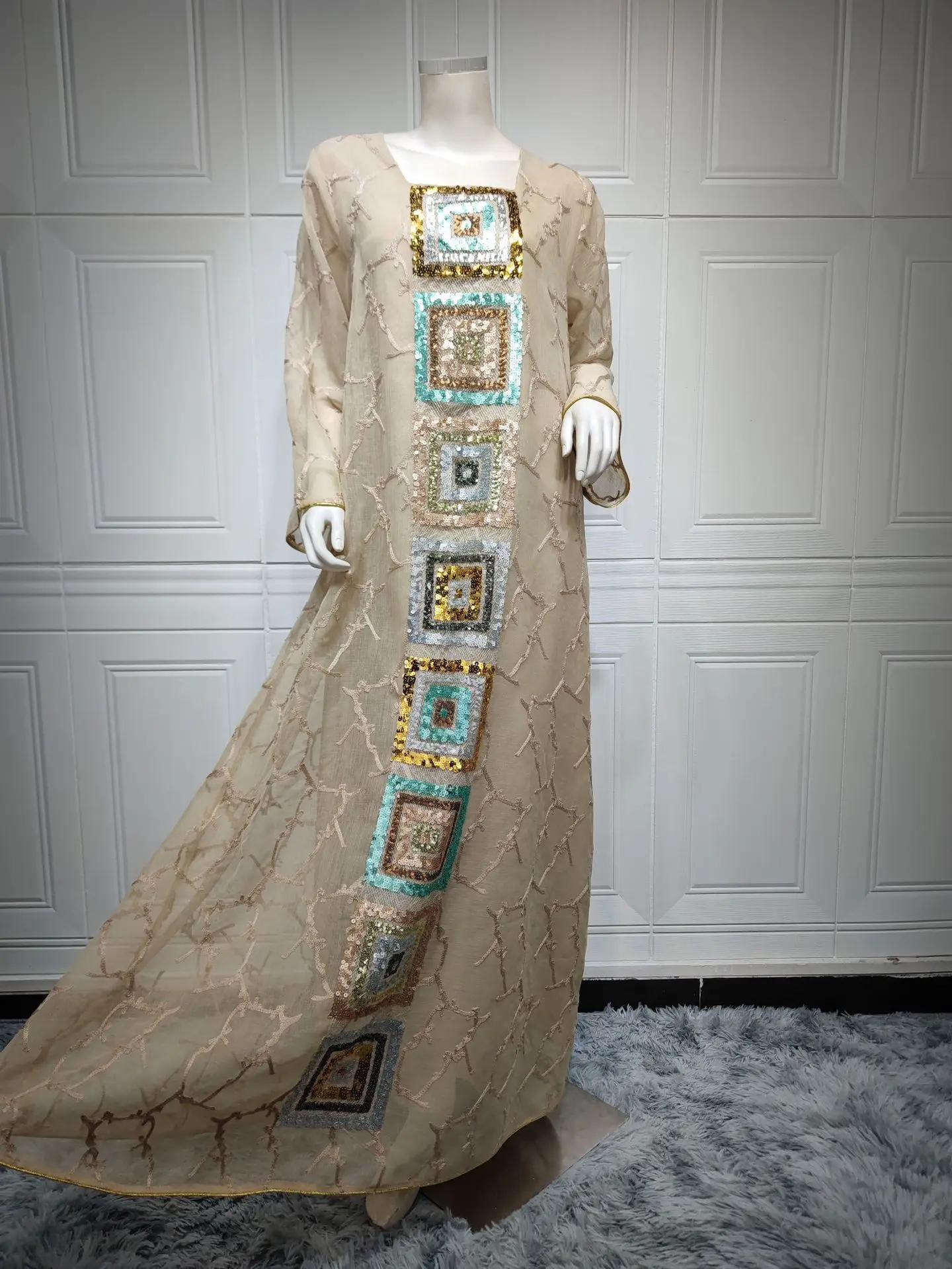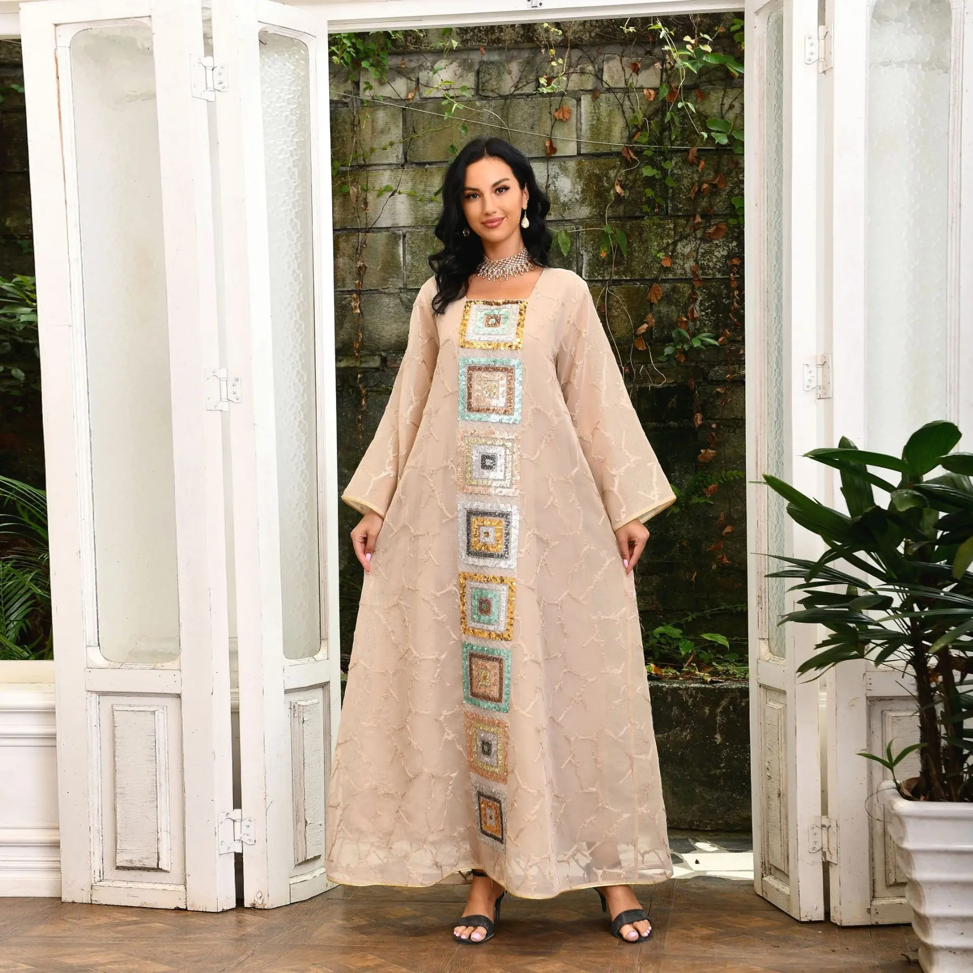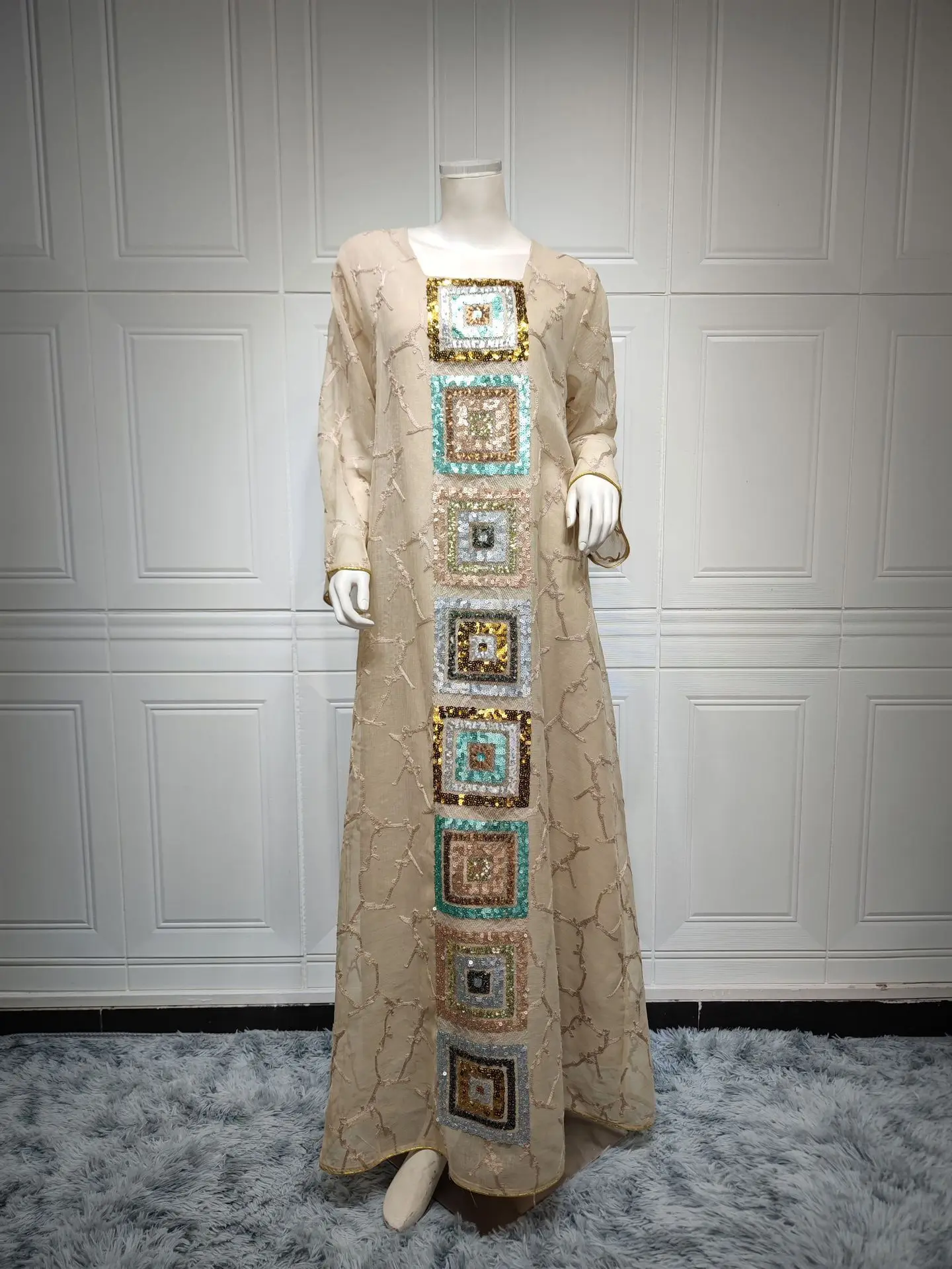 Be the first to review “Ramadan Jalabiya Arabic Long Dresses For Women Muslim Abaya Dubai Turkey Islam Puff Sleeve Sequin Hijab Dress Moroccan Kaftan” Cancel reply