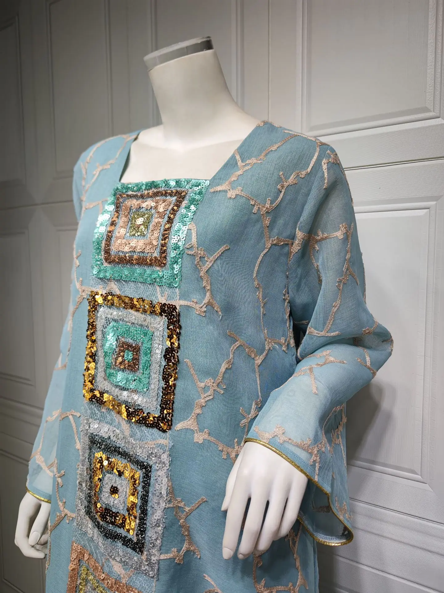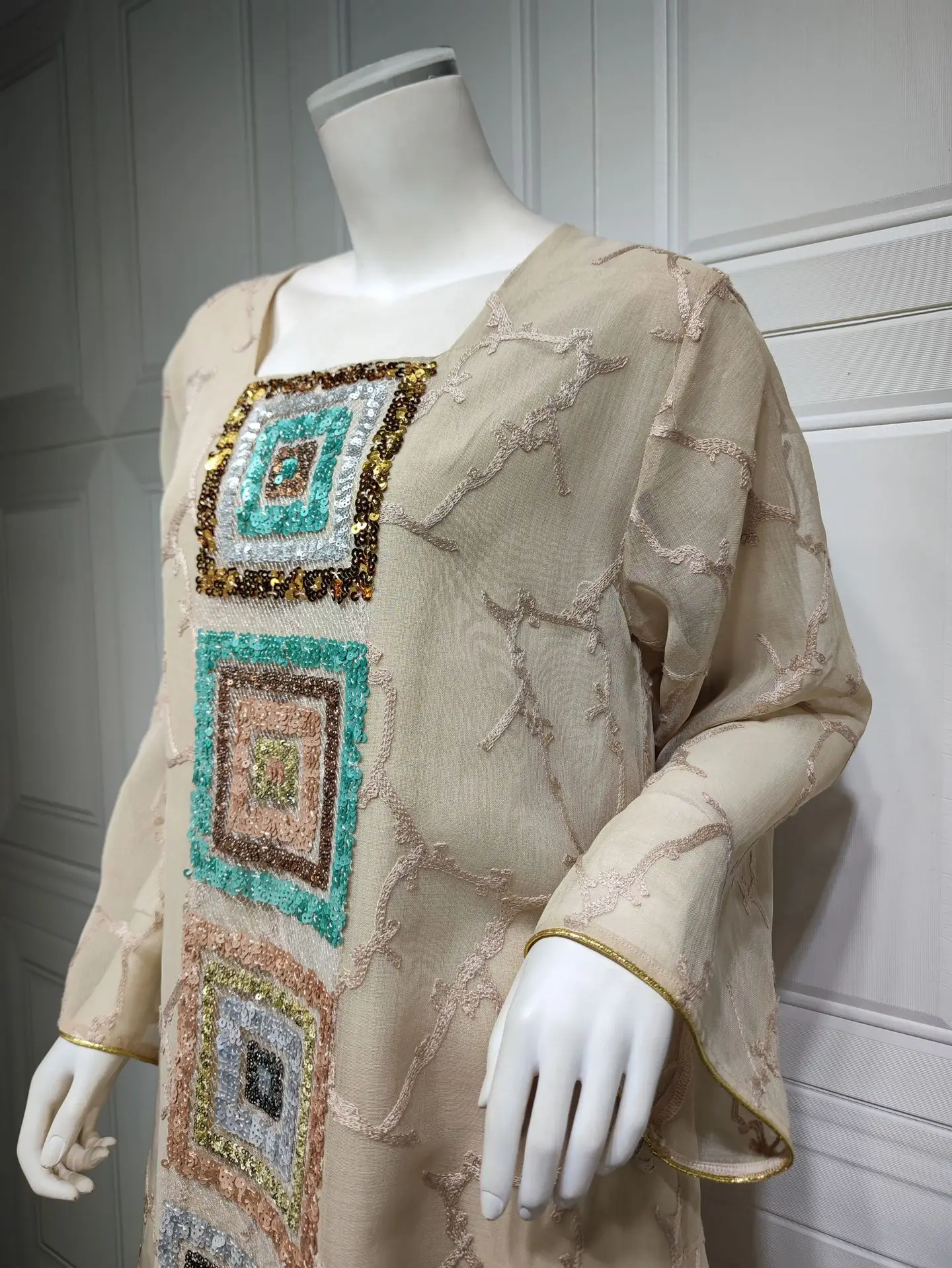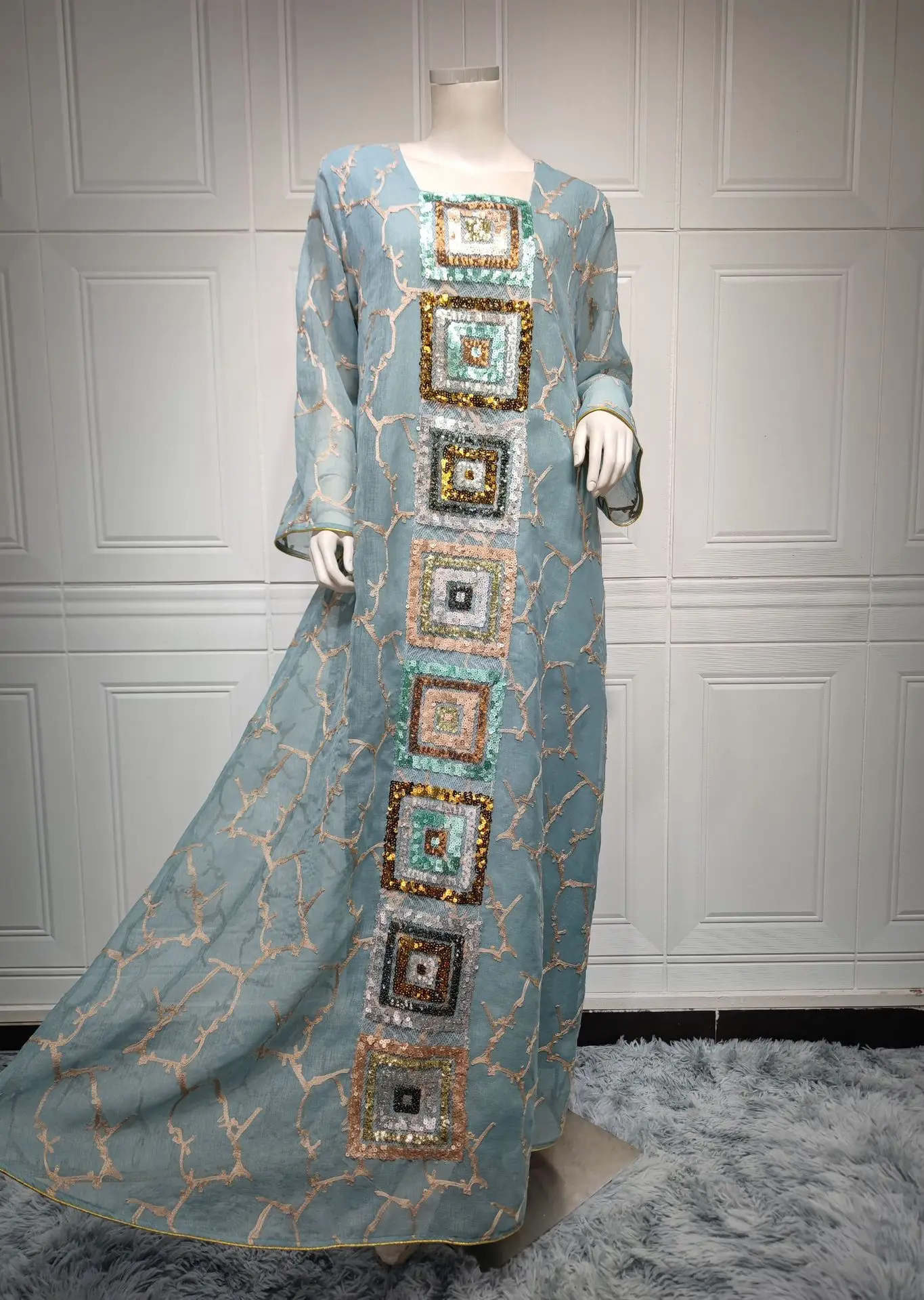 Be the first to review “Ramadan Jalabiya Arabic Long Dresses For Women Muslim Abaya Dubai Turkey Islam Puff Sleeve Sequin Hijab Dress Moroccan Kaftan” Cancel reply